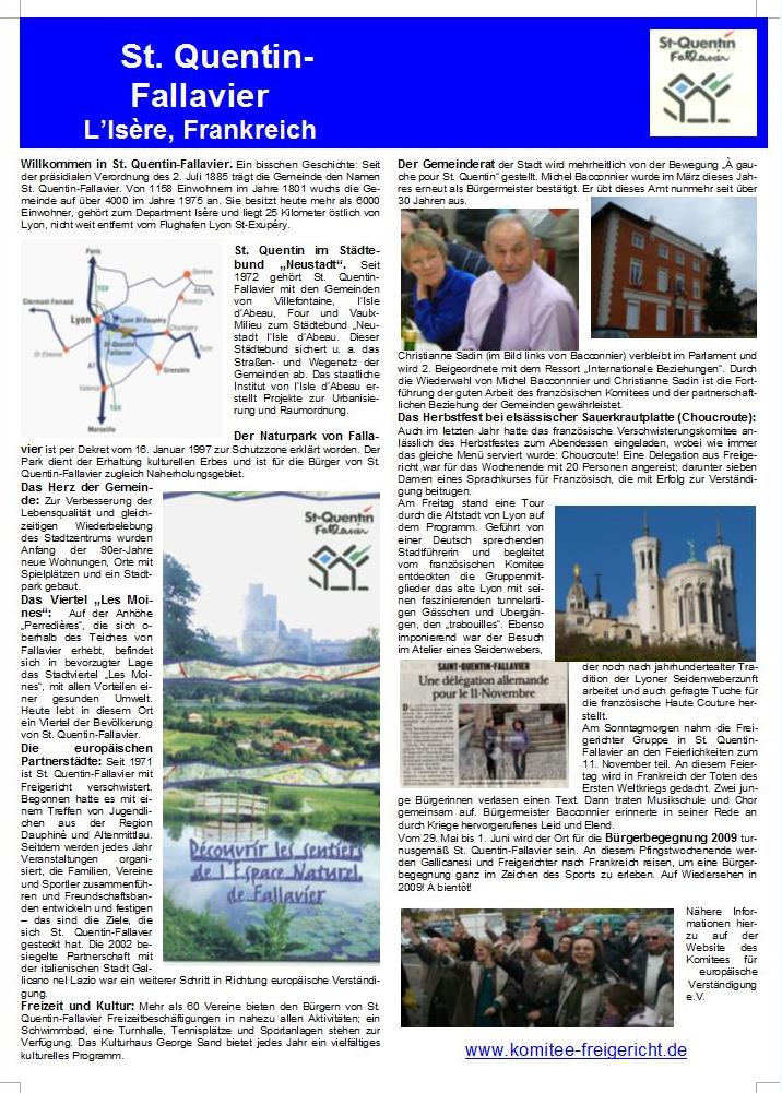 Vom 29. Mai bis 1. Juni 2009 war St-Quentin-Fallavier turnusgemäß der Ort für die Bürgerbegegnung. An diesem Pfingstwochenende reisten Gallicanesi und Freigerichter nach Frankreich zur Bürgerbegegnung.