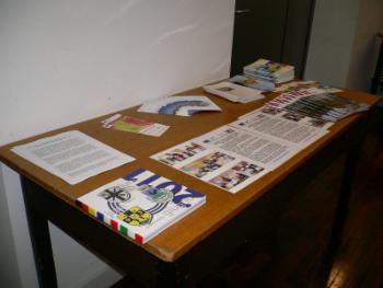 Im Bild rechts Anna Noddeland und Marijke Mulder (IPZ). Rechts Mitte das Forum, rechts unten das Informationsmaterial.